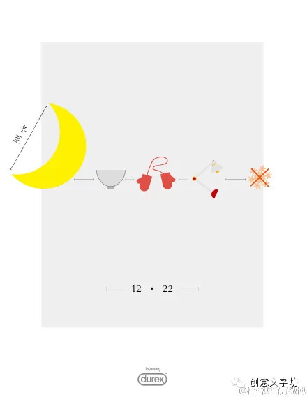 12、冬至那天是全年白昼最短、黑夜最长的日子,所以杜蕾斯的文案是这样写的:今夜最「长」情。