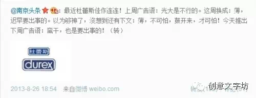 今天,我们先来欣赏杜蕾斯的创意文案。